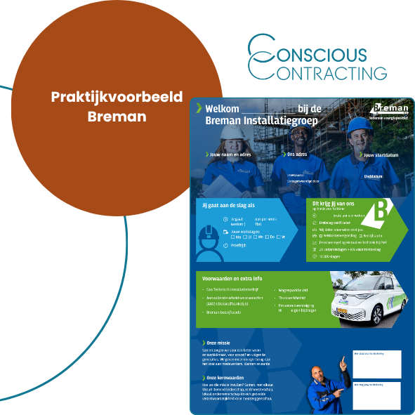Breman Installatiegroep heeft medemenselijk ondernemen hoog in het vaandel staan. Het HR-beleid van het familiebedrijf met ruim 1600 medewerker is de afgelopen jaren van een traditionele naar een mensgerichte benadering gegaan, van Human Resources naar Human Relations. “Met conscious contracting laat je dat al aan de poort zien.”